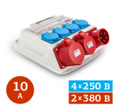 - Выход: 4 розетки РП10-3 2Р+РЕ 16 А (250 В),