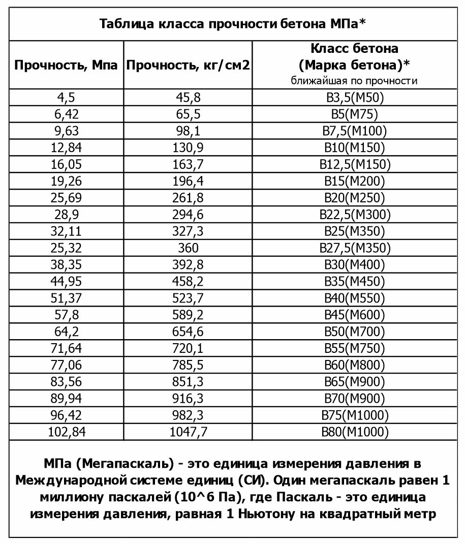 и класса бетона