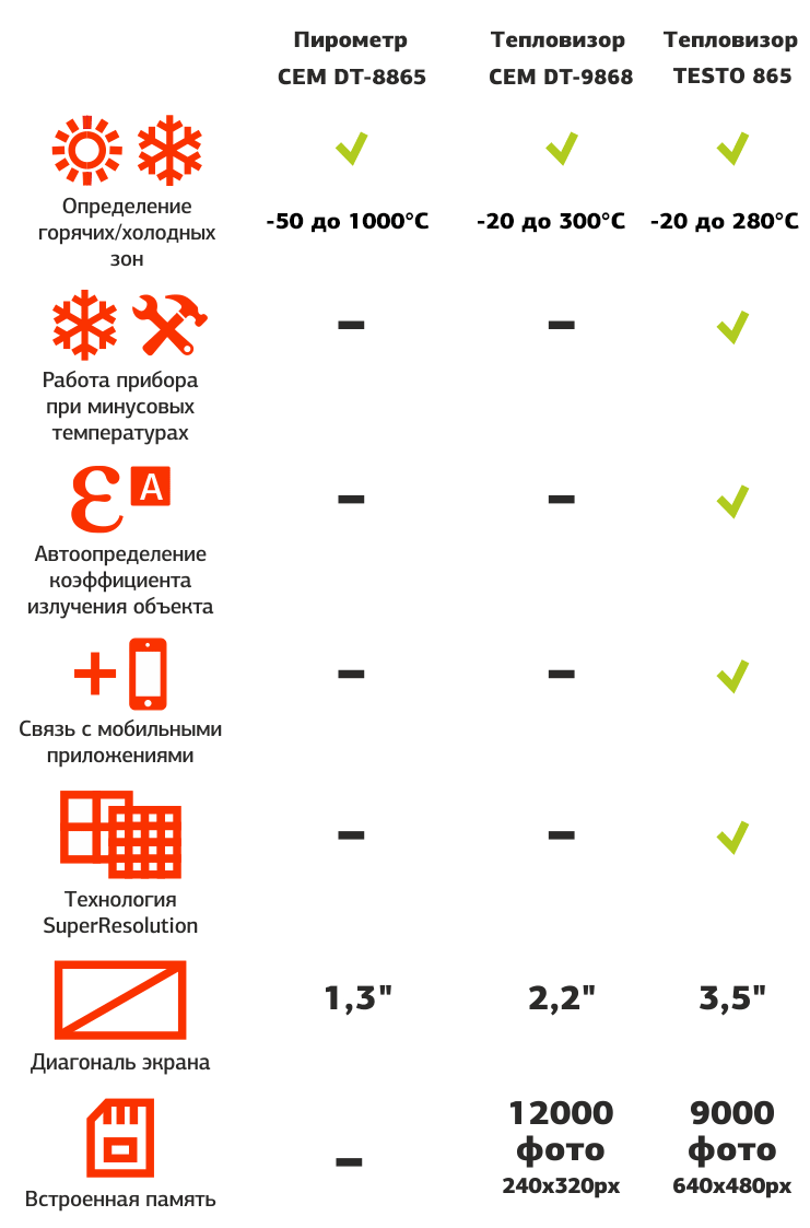 - Большинство пирометров не сохраняют результаты исследований. Тепловизоры же сохраняют отчеты благодаря встроенной или внешней памяти.