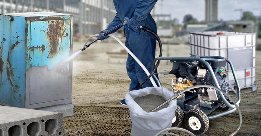 - Сильный поток воды с абразивными частицами удаляет загрязнения, ржавчину,