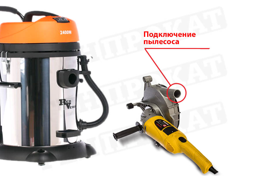 Комплектация штробореза позволяет подключать пылесос для уменьшения пыли и мелких частиц, образующихся при резке камня, бетона и других твердых материалов.