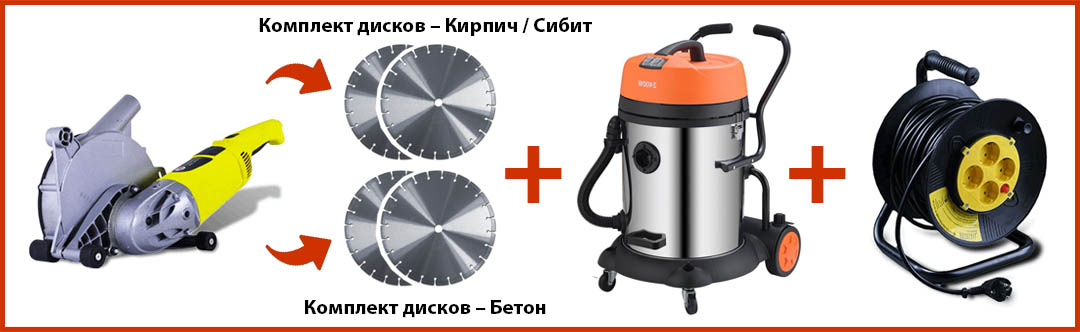 С этим оборудованием дополнительно необходимо взять диски для штроборезов