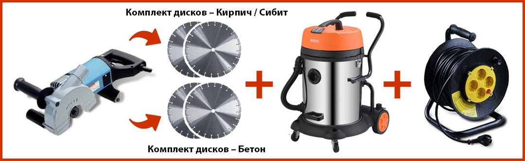 С этим оборудованием дополнительно необходимо взять диски для штроборезов
