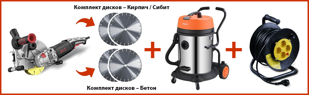 С этим оборудованием дополнительно необходимо взять диски для штроборезов