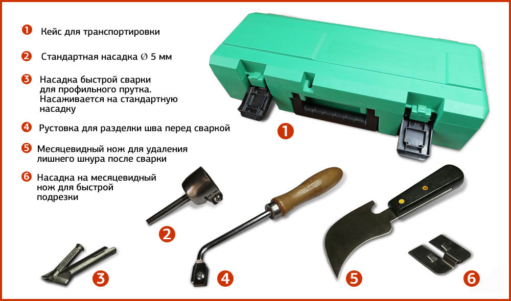 - для сварки листов, труб, пленок, кровельных и гидроизолирующих покрытий, ПВХ-ткани,